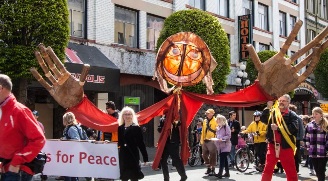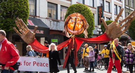 Puppets for Peace joined the parade with our giant Earth puppet in the walk to Centennial Square.